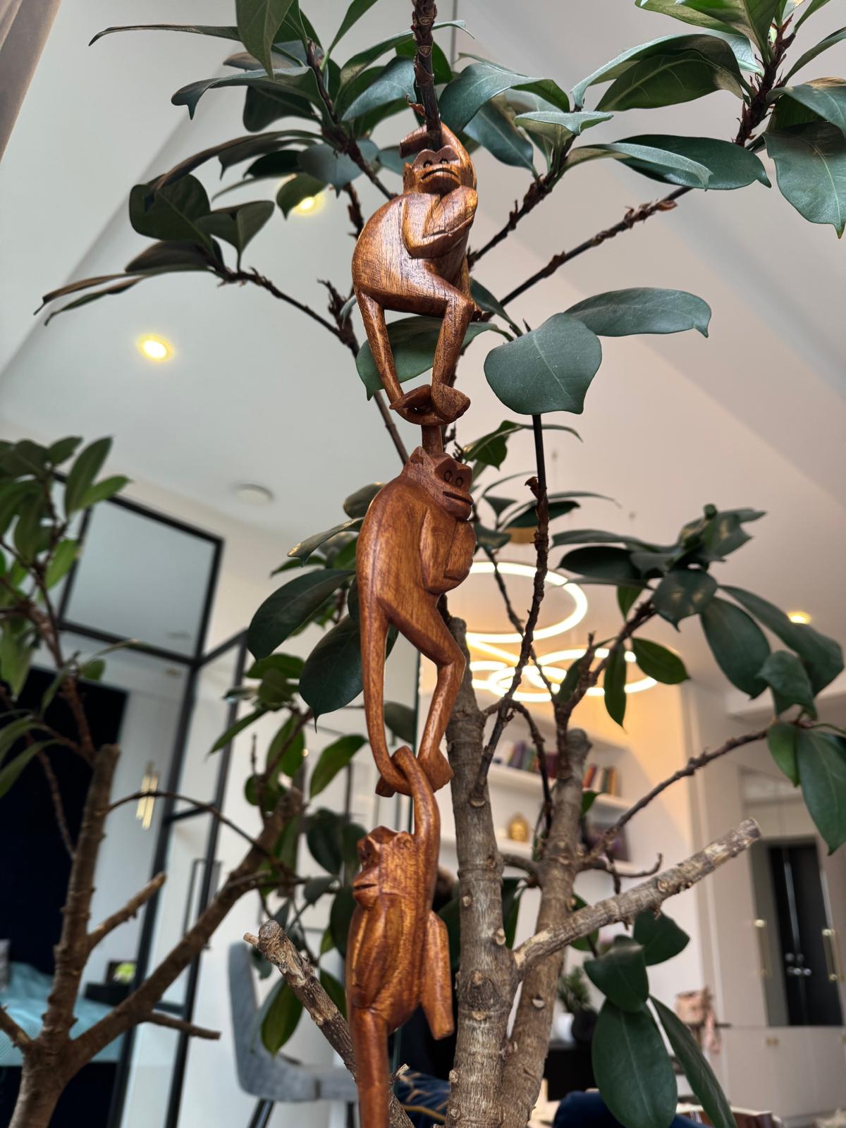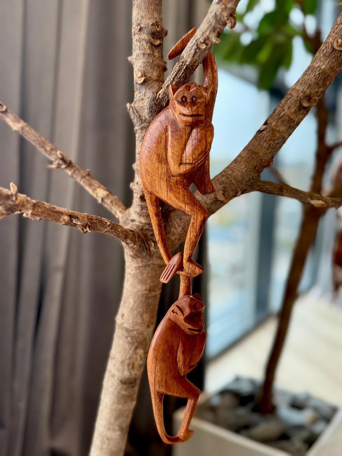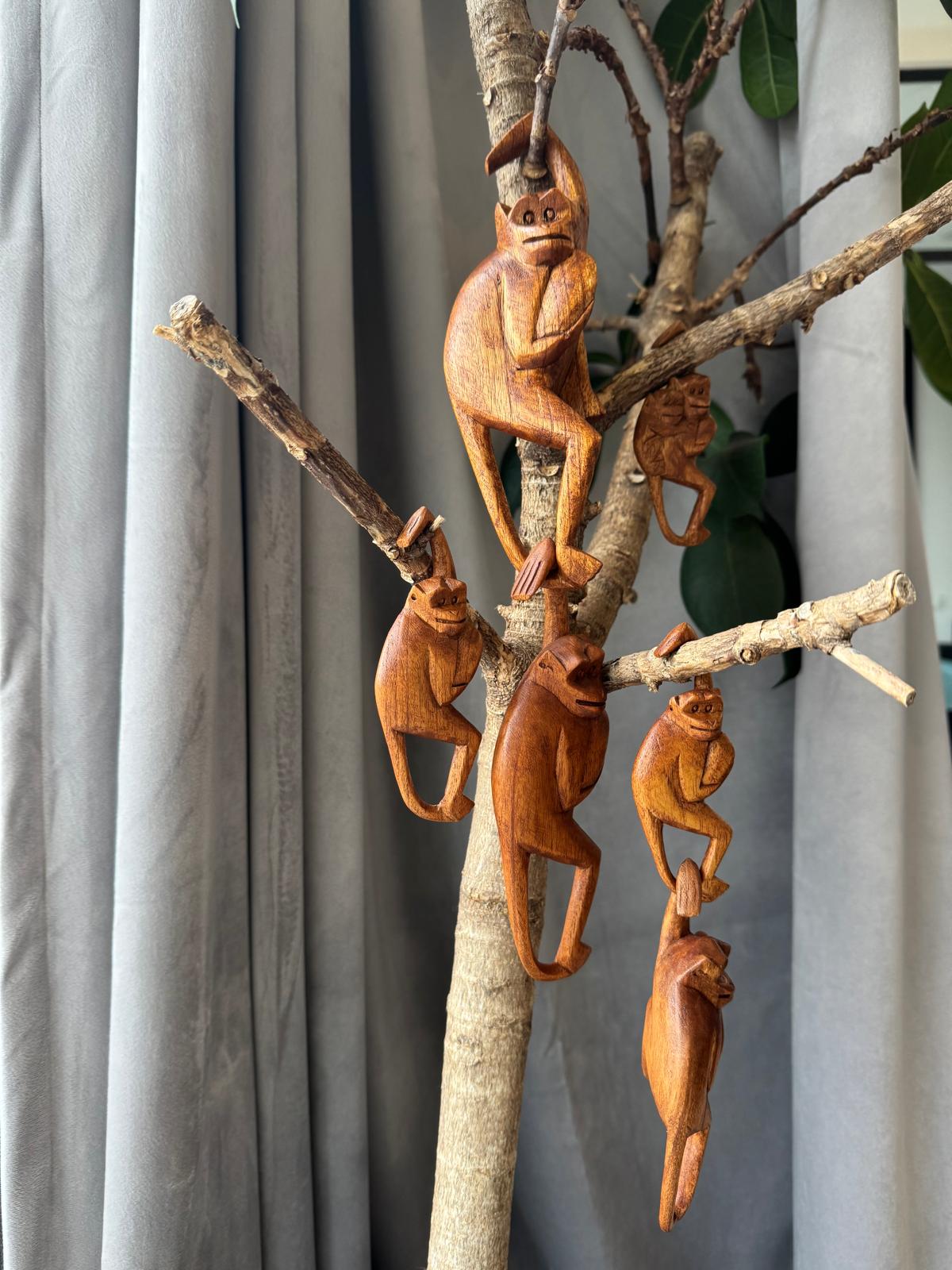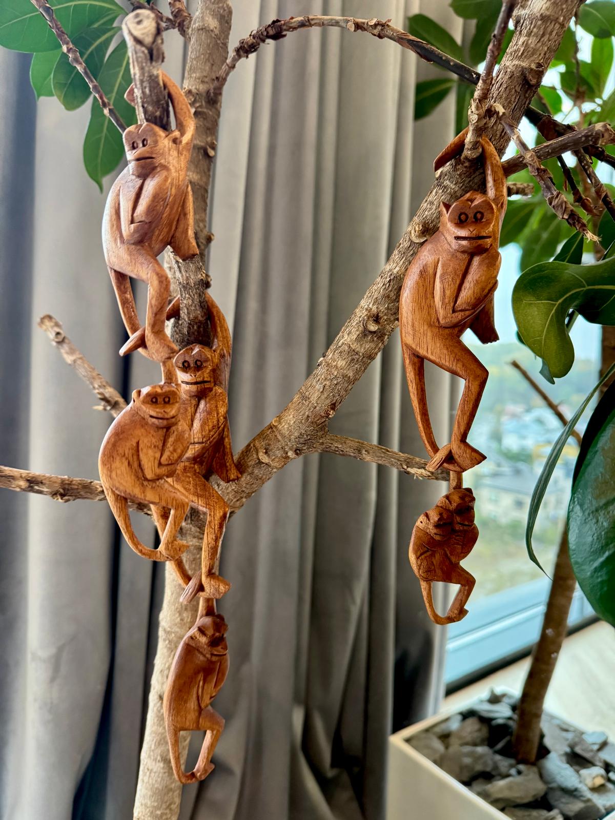 Beždžionių Šeima – Rankų darbo Statulėlė iš SUAR Medienos, iš BALIO