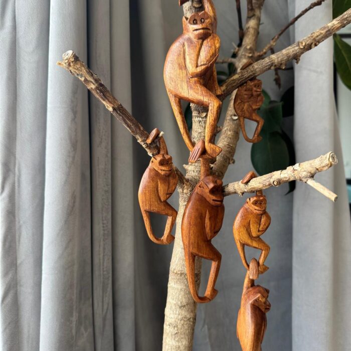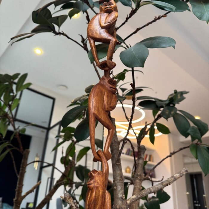 Beždžionių šeima, pagaminta iš Balio SUAR medienos, yra žaismingas rankų darbo meno kūrinys. Ši statulėlė simbolizuoja šeimos ryšius, džiaugsmą ir žaismingumą, suteikdama namams linksmo ir šilto pojūčio.