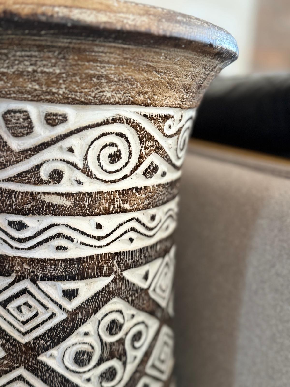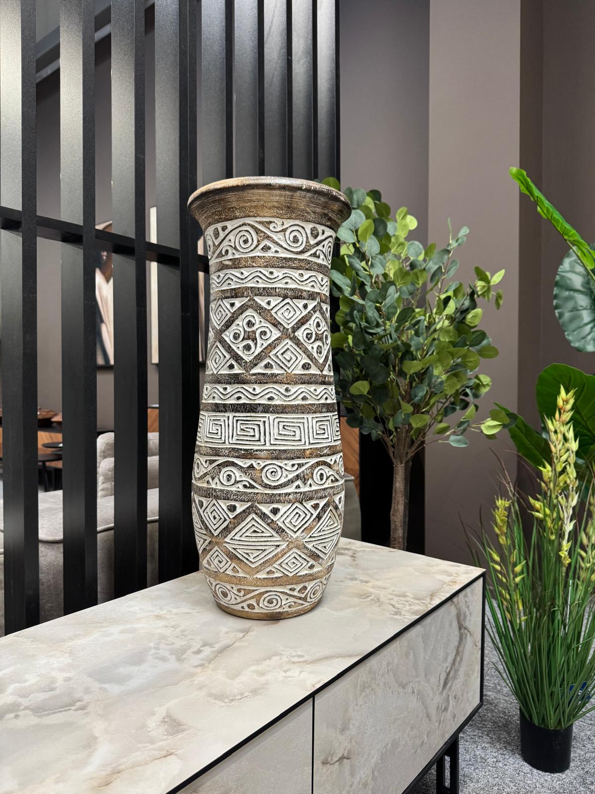 Papuoškite savo namus išskirtine dekoratyvine vaza, sukurta Balio meistrų iš ilgaamžio tiko medžio. Kiekviena vaza – tai unikalus rankų darbo darbas, sendintas, kad perteiktų senovinį stilių ir meną iš praeities. Ji sukurta su meile ir kruopštumu, todėl tampa ne tik interjero detale, bet ir tikru meno kūriniu.