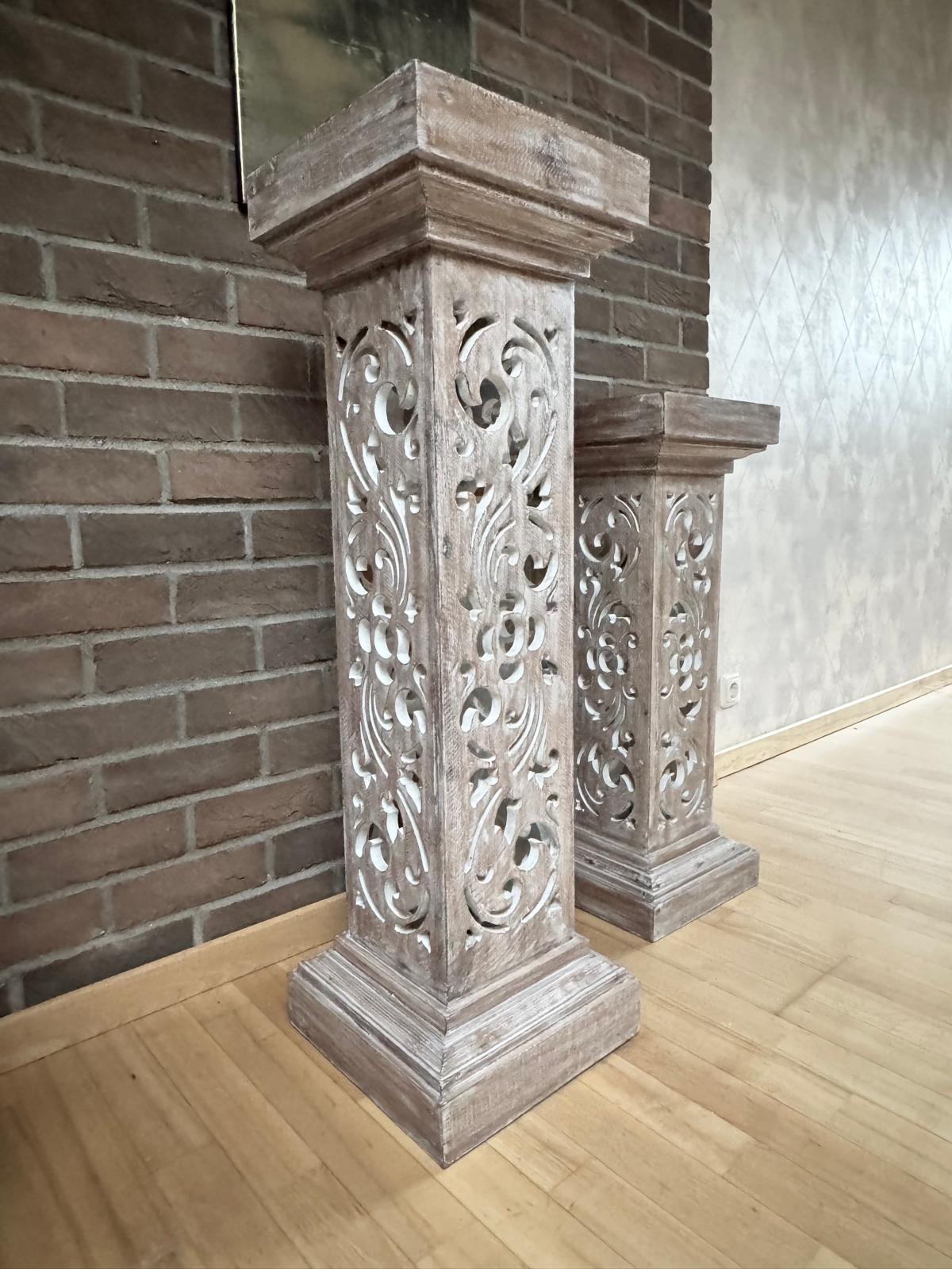 Dekoratyvinis Šviestuvas – rankų darbo Balio meistrų kūrinys iš Tiko medžio, 80 cm, 90 cm, 100 cm.