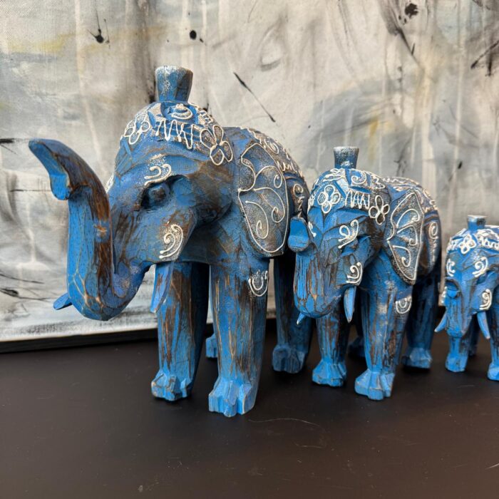 Dekoratyvinių drambliukų rinkinys taps išskirtiniu jūsų interjero papuošimu, kuris ne tik vizualiai praturtins erdvę, bet ir įneš ramybės, gerovės bei teigiamos energijos. Tai daugiau nei dekoras – tai dvasinga Balio kultūros dalelė jūsų namuose.