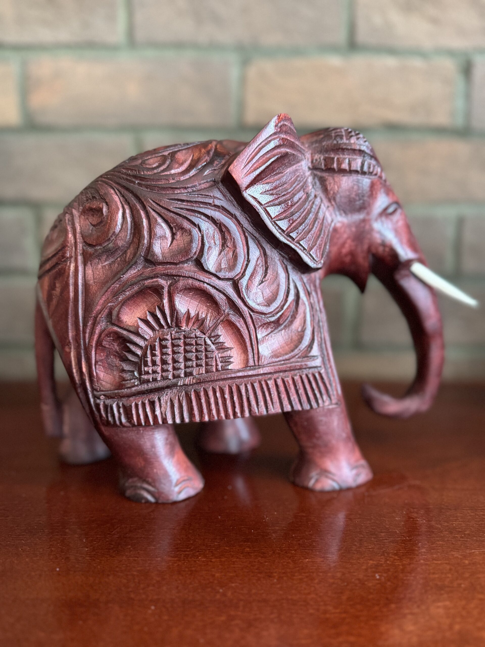 Šis rankų darbo dramblys, išskaptuotas iš tvirto raudonmedžio, atkeliavęs tiesiai iš Šri Lankos meistrų rankų, yra ne tik išskirtinis interjero akcentas, bet ir simboliška, šilumą bei ramybę skleidžianti namų puošmena.