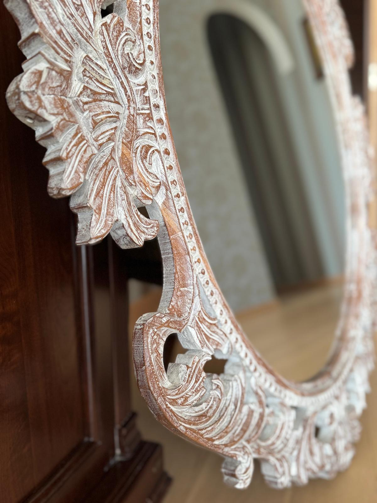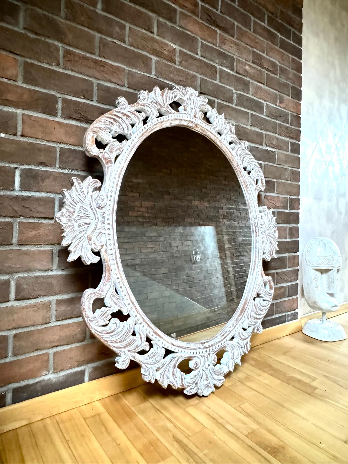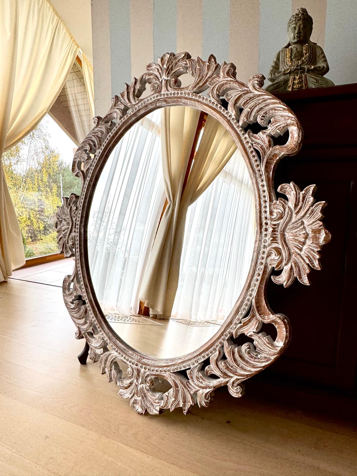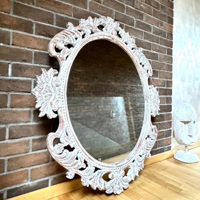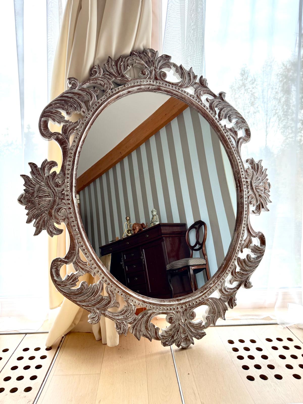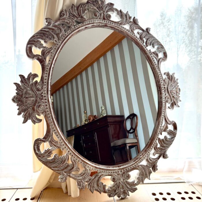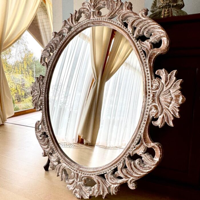 Rankų darbo unikalumas – kiekvienas veidrodis kruopščiai išdrožinėtas, todėl nėra dviejų vienodų.