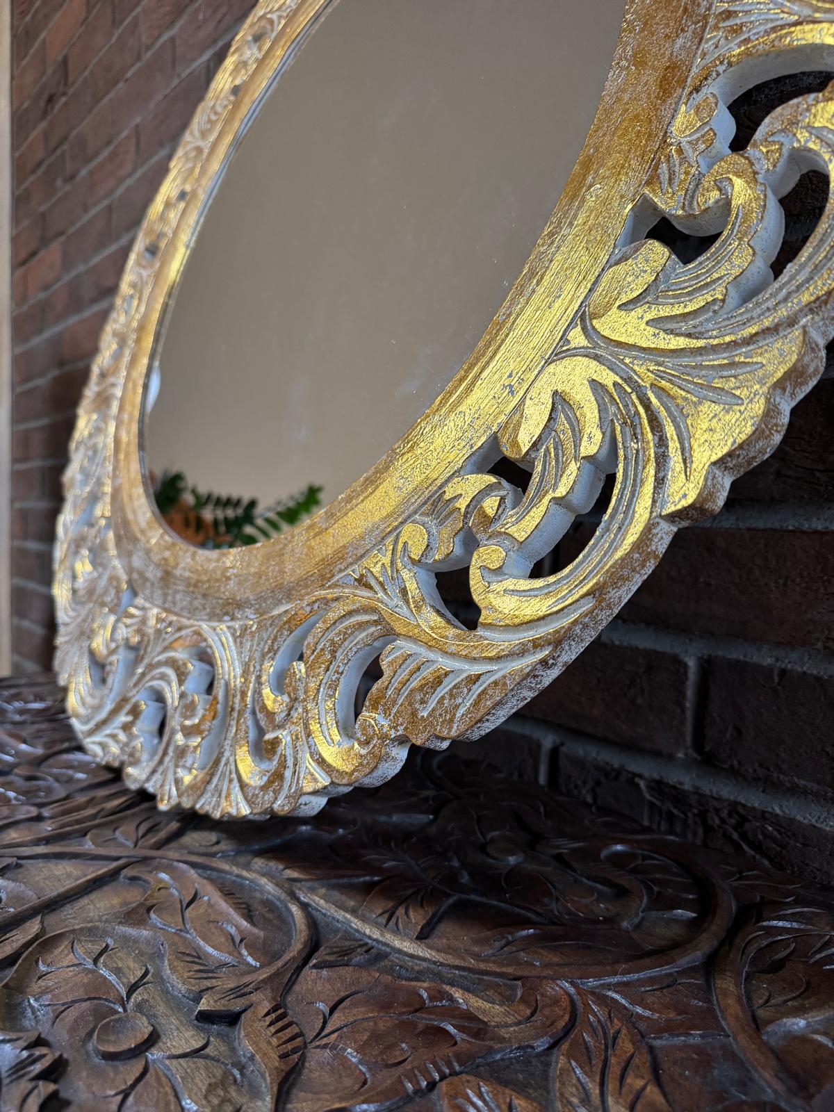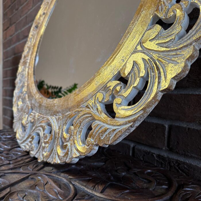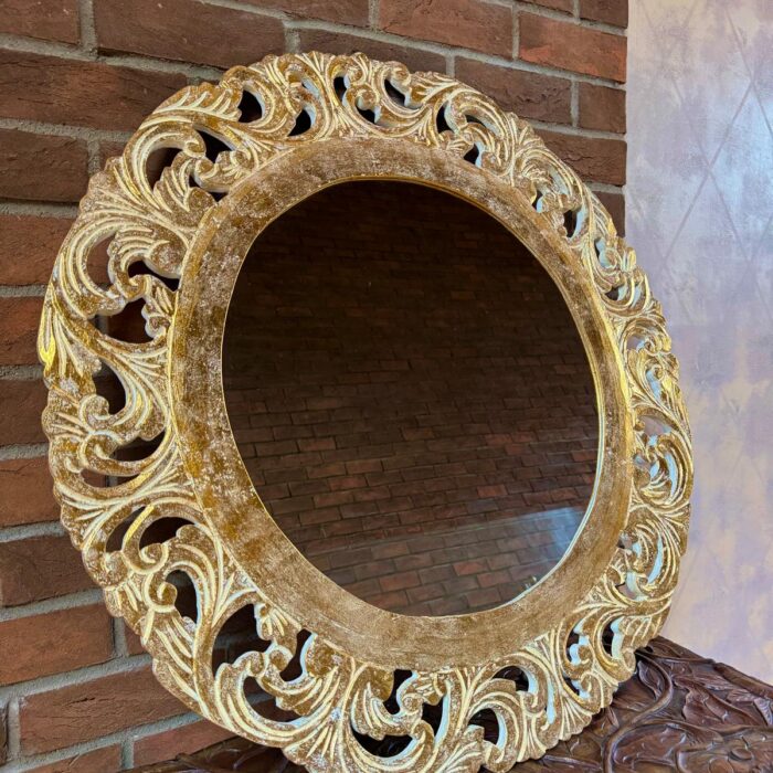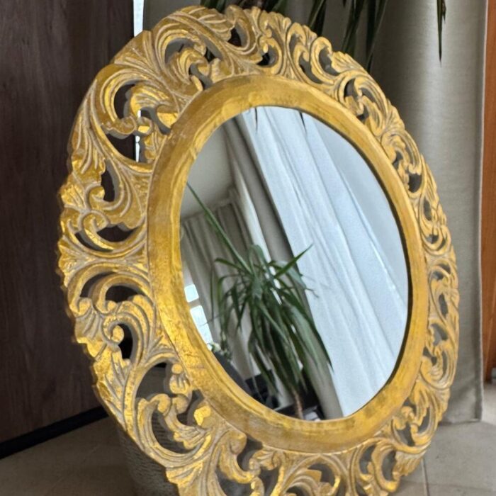 Rankų darbo unikalumas – kiekvienas veidrodis kruopščiai išdrožinėtas, todėl nėra dviejų vienodų.