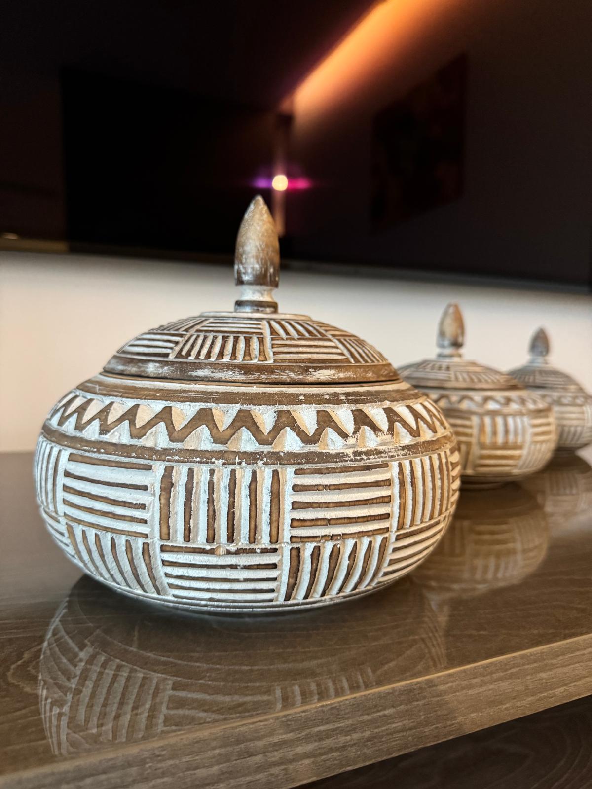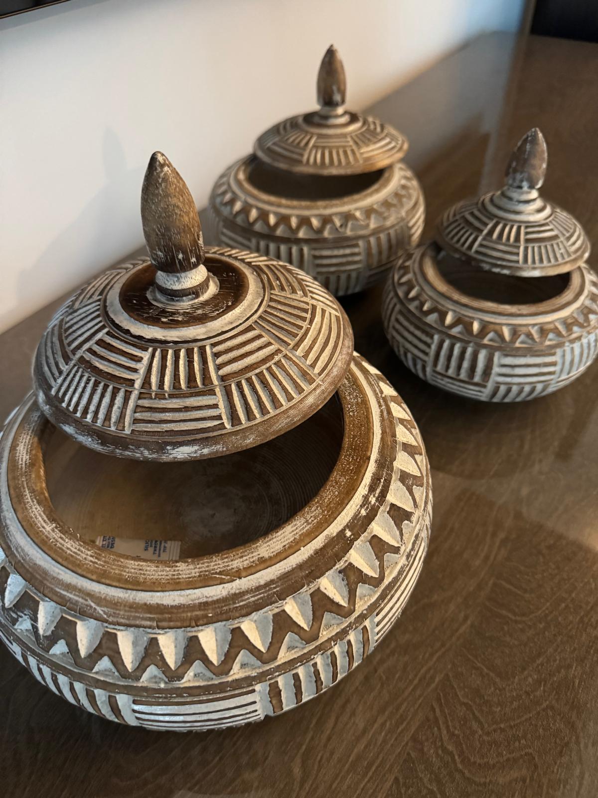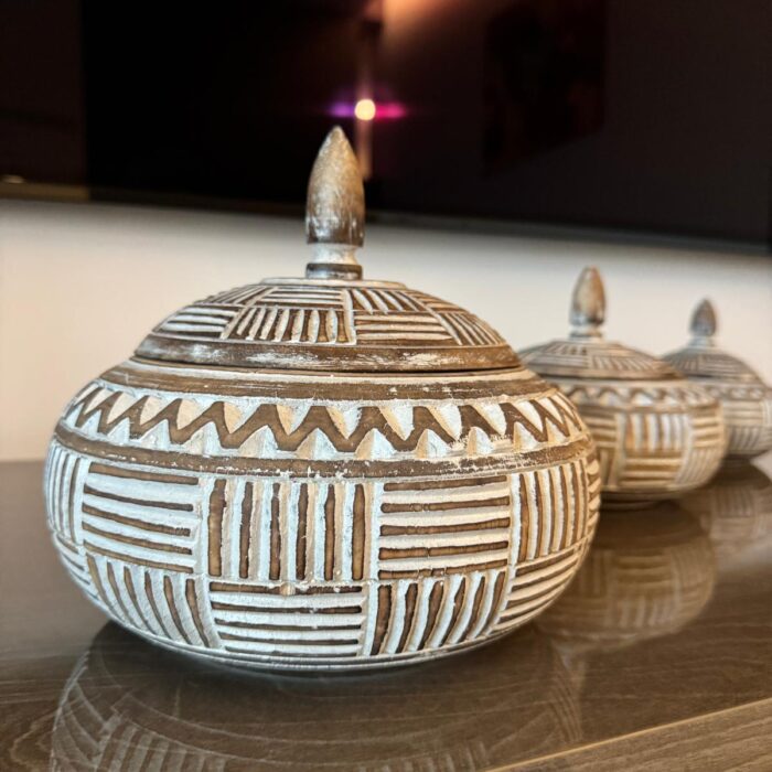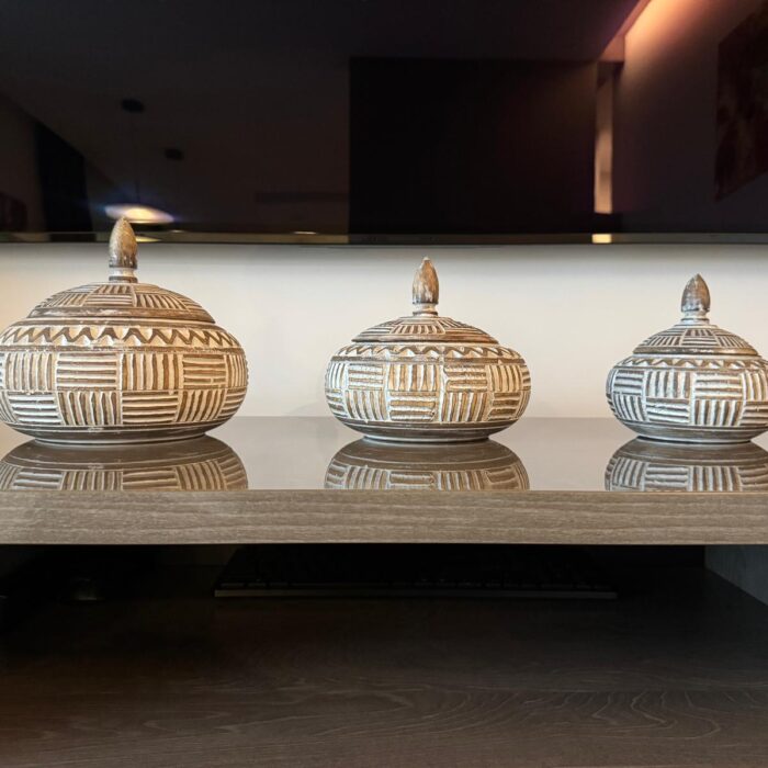 Dubenėlių rinkinys taps jaukumo ir egzotikos šaltiniu, puikiai derančiu tiek prie modernaus, tiek prie klasikinio interjero. Jis suteiks funkcionalumo, o kartu papuoš erdvę autentišku, šilumą ir harmoniją spinduliuojančiu Balio stiliaus akcentu.