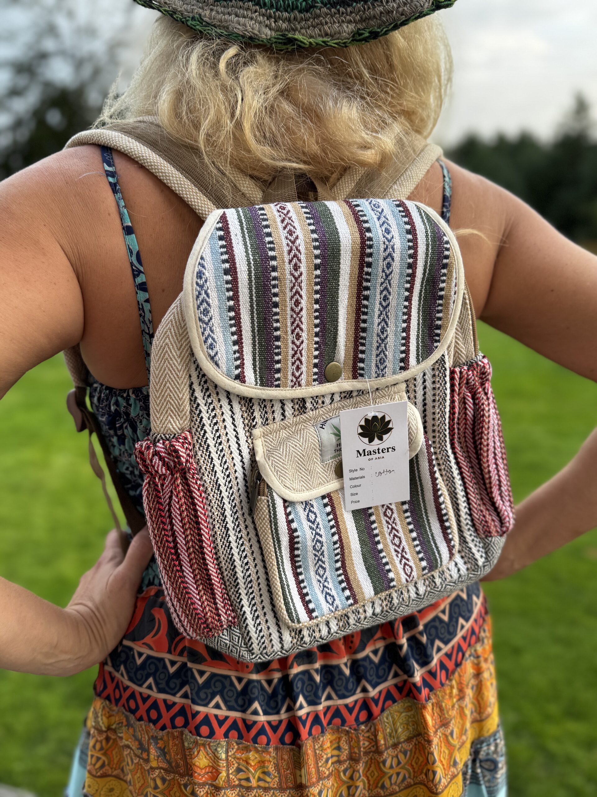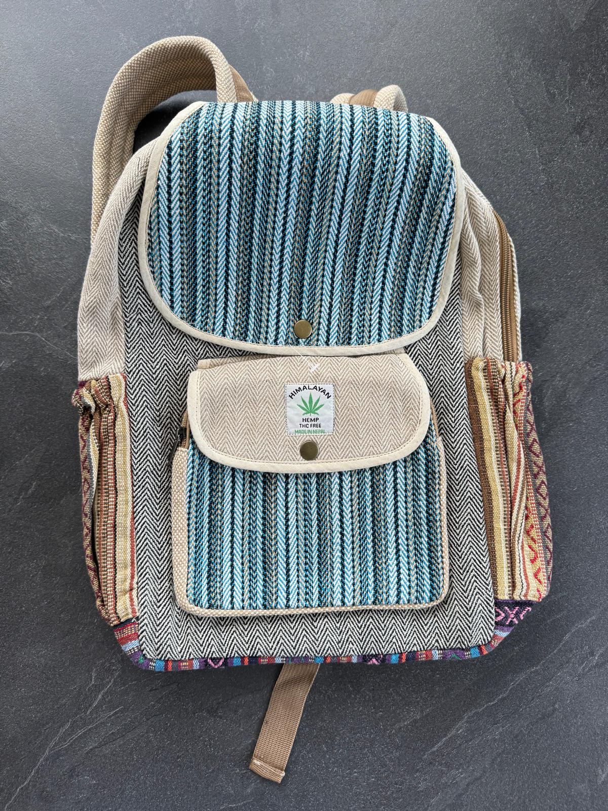 Rankų darbo gaminys iš Nepalo – kiekviena kuprinė pagaminta su meile ir dėmesiu detalėms, remiantis vietinėmis tradicijomis.