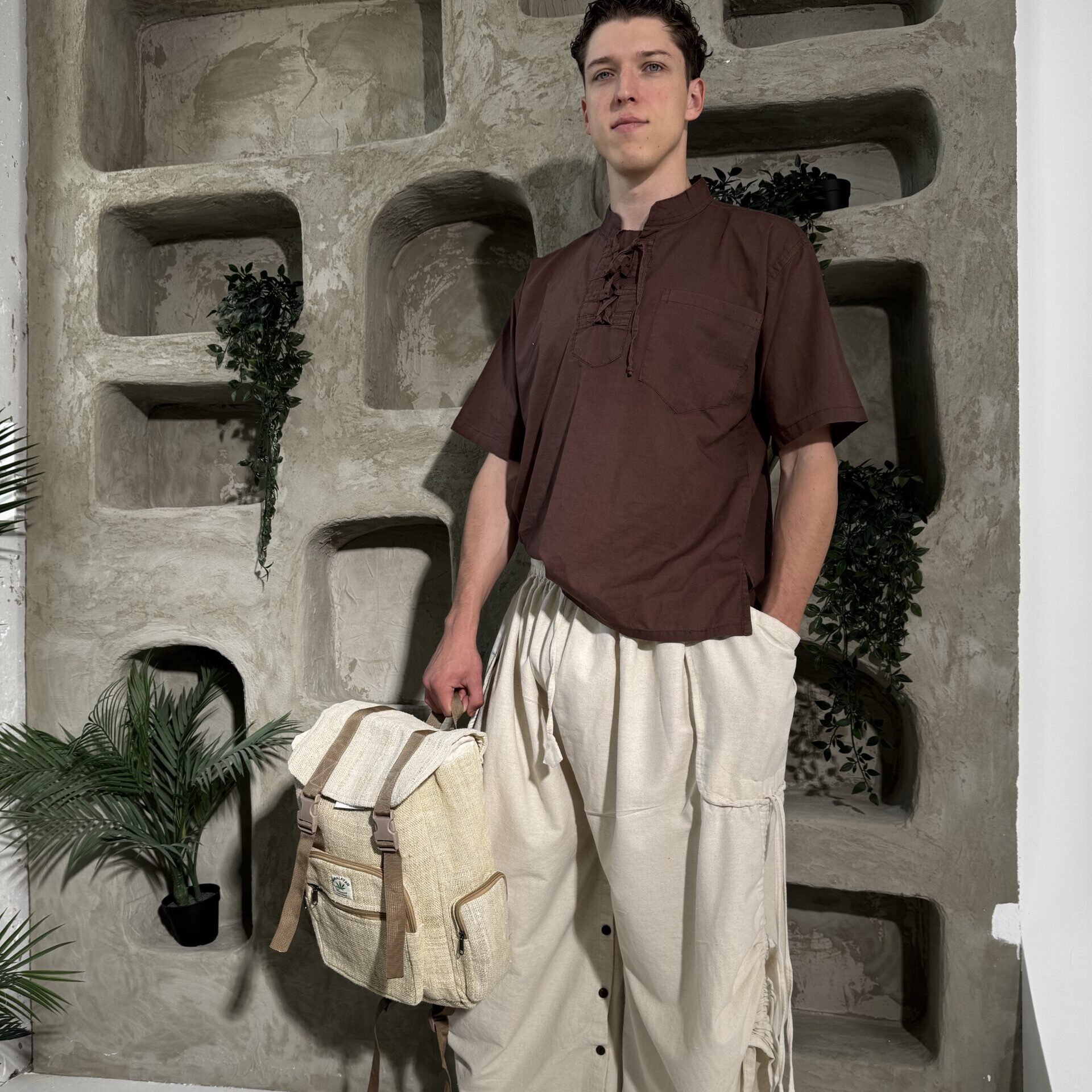 Ši kuprinė – tai daugiau nei tiesiog aksesuaras. Tai tavo pasirinkimas gyventi sąmoningai, tausoti gamtą ir rinktis natūralumą kiekviename žingsnyje. Pagaminta Nepale, iš tvirto ir ilgaamžio kanapių pluošto, ši kuprinė įkūnija ekologiją, paprastumą ir gilią pagarbą žmogaus bei žemės ryšiui.