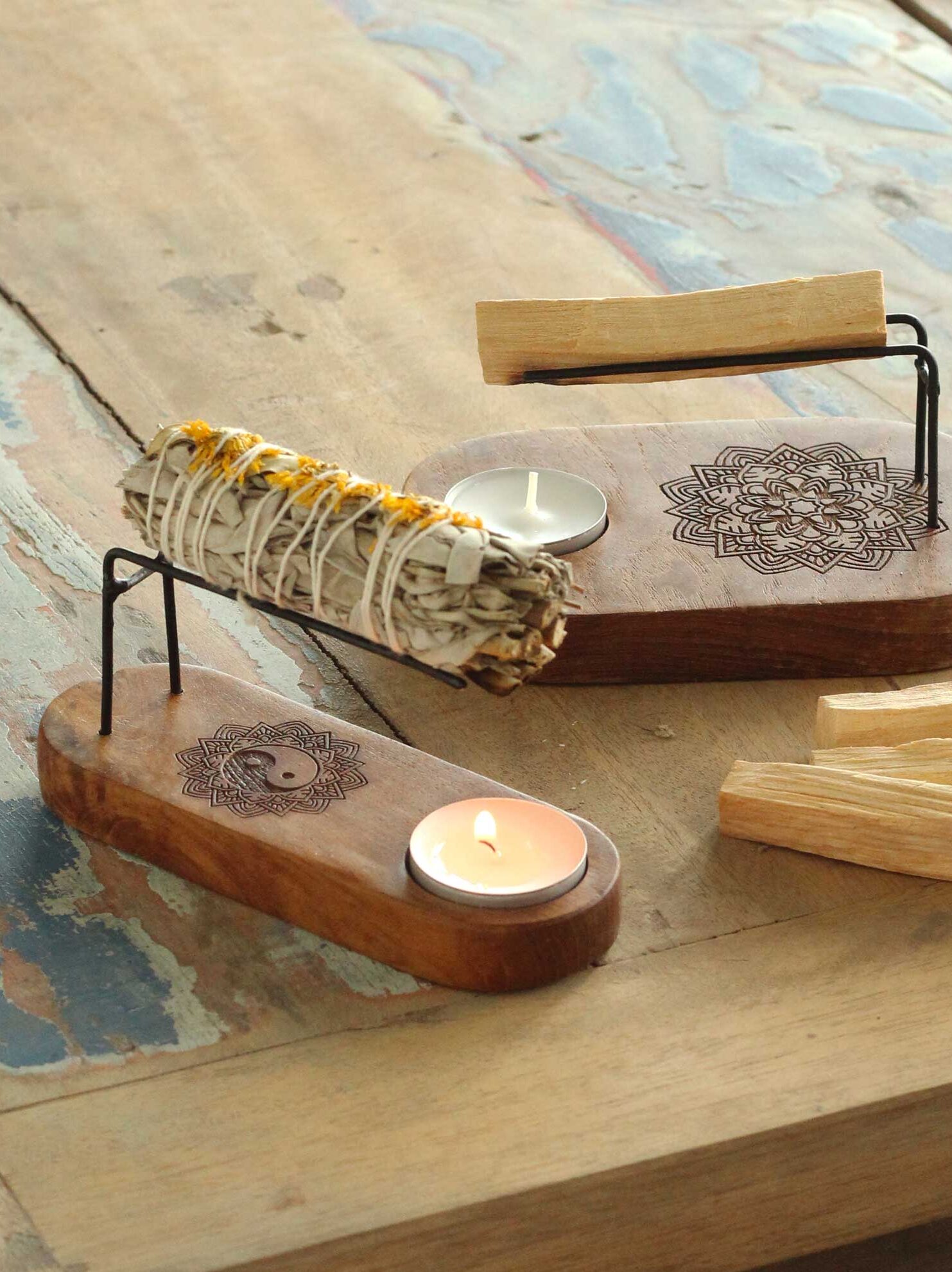 Tiko medžio smilkalinė su mandala – Palo Santo ir šalavijo smilkymui