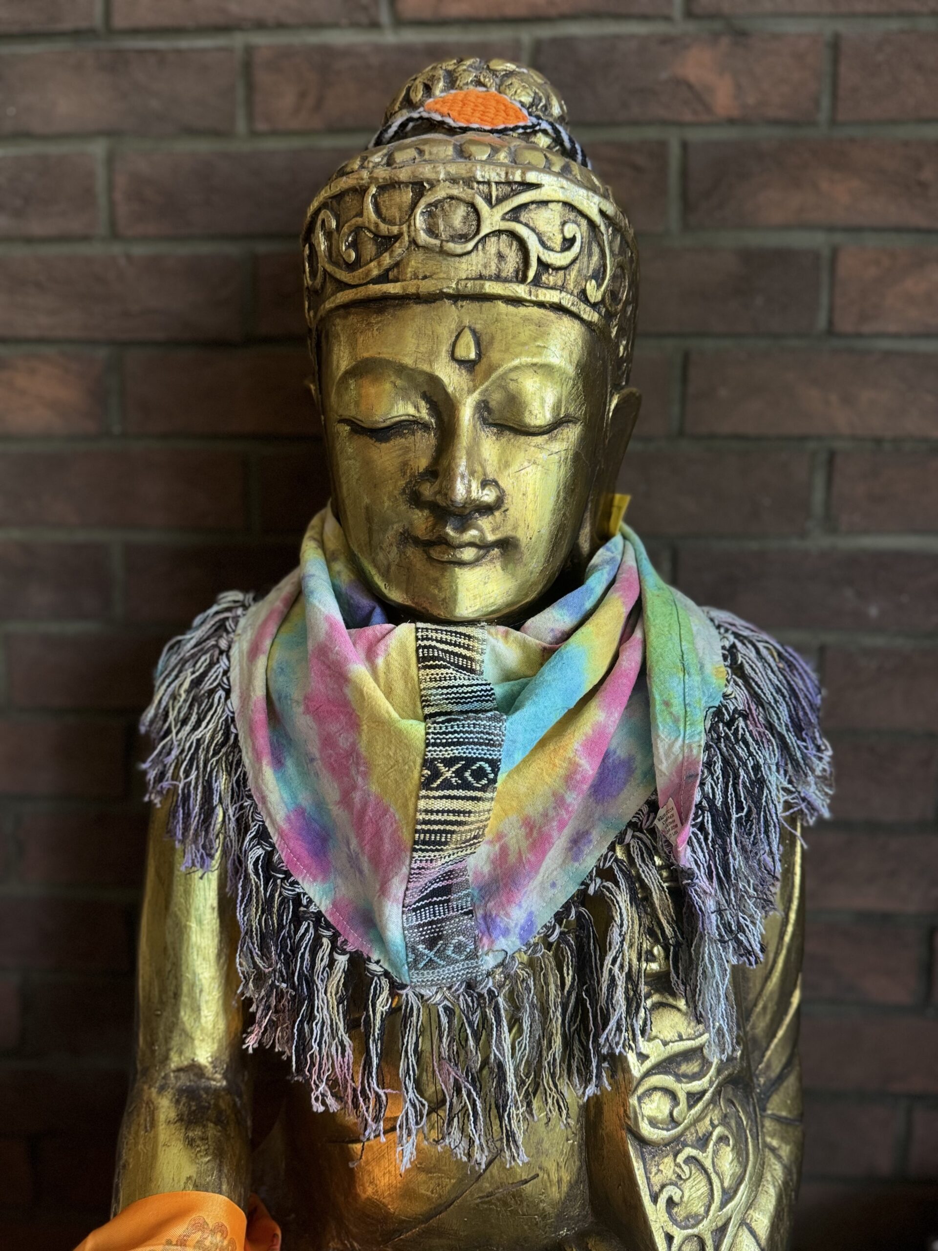 Batikos technika – tai ne vien dažymo būdas, o meditacija spalvose. Kiekvienas raštas čia kalba apie darną, gamtą ir žmogaus ryšį su pasauliu. Ši skara šildo ne tik kūną, bet ir sielą – tarsi tylus priminimas apie paprastumą, ramybę ir tikrumą.