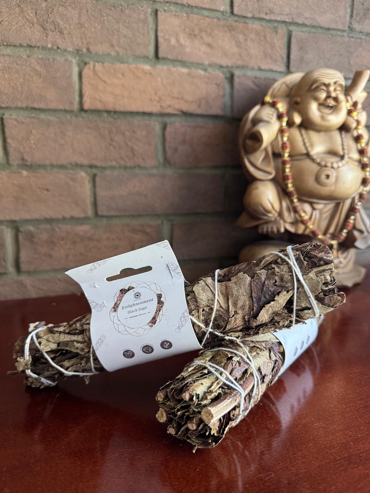 Kai lapai nudžiūsta, juos galima sudeginti. Tai yra 22,5 cm ilgio surištas juodasis šalavijas. Tokiu būdu jį lengva uždegti. Kai tik spindulio viršus užsidega, galite juo pamojuoti plunksna ir paskleisti šventus dūmus ant daiktų, žmonių ir visuose kambario kampuose.